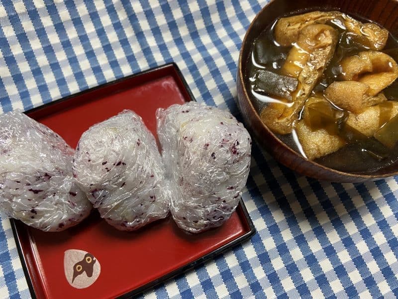 自宅でもおにぎりとこの八丁味噌の赤だしでランチとしてみました。