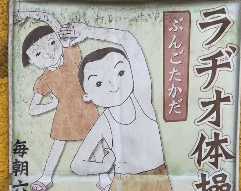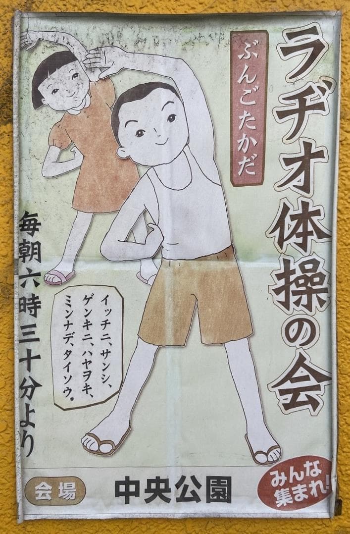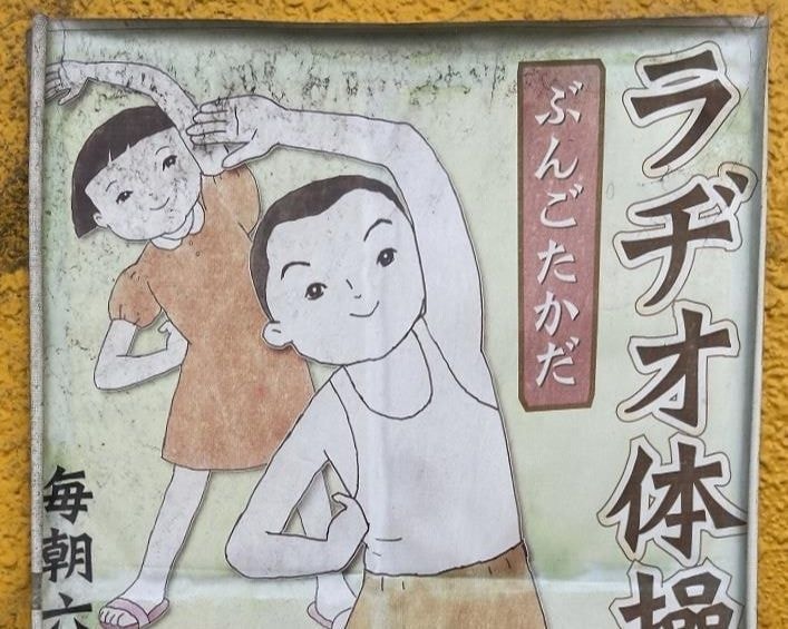 このポスターは昭和の町・豊後高田に貼られていたものですがラジオ体操を昭和の遺物としてしまうのは悲しいものですね。