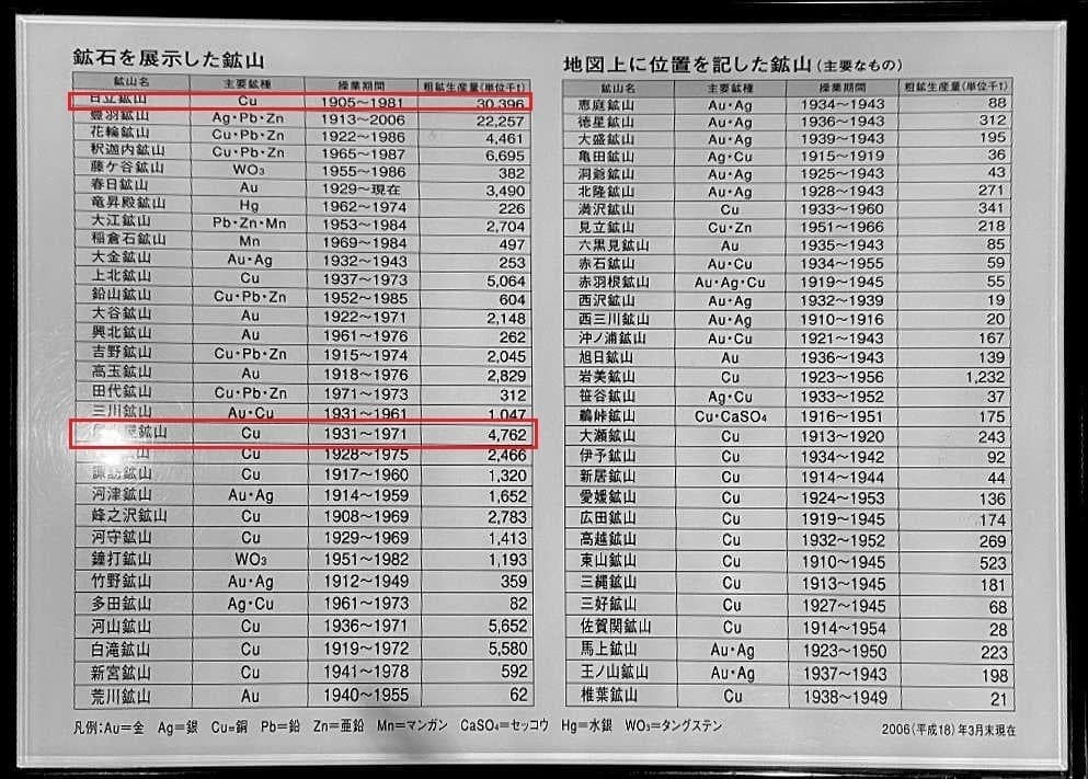 ちなみに尾小屋鉱山は1931年(昭和6年)に日本鉱業の傘下となり、日立鉱山は1929年(昭和4年)に日本産業から鉱山及び関連部門を分離設立された日本鉱業の主力鉱山。