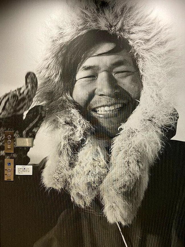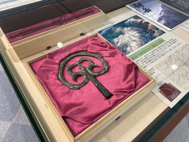 【左写真】国土地理院の前身、参謀本部陸地測量部と山岳会との剱岳を巡る登頂競争を描いた映画も印象に残る作品でしたが、ここに剱岳で見つかった錫杖と鉄剣のレプリカが展示されていました。
