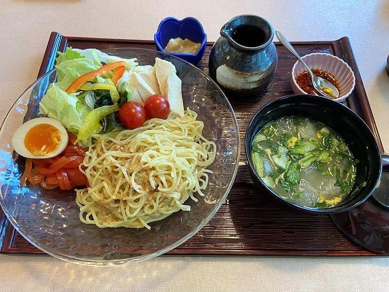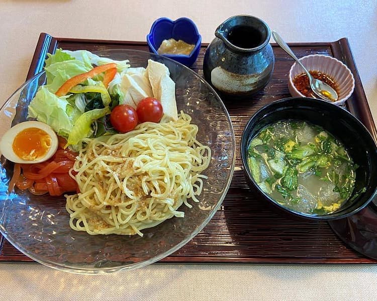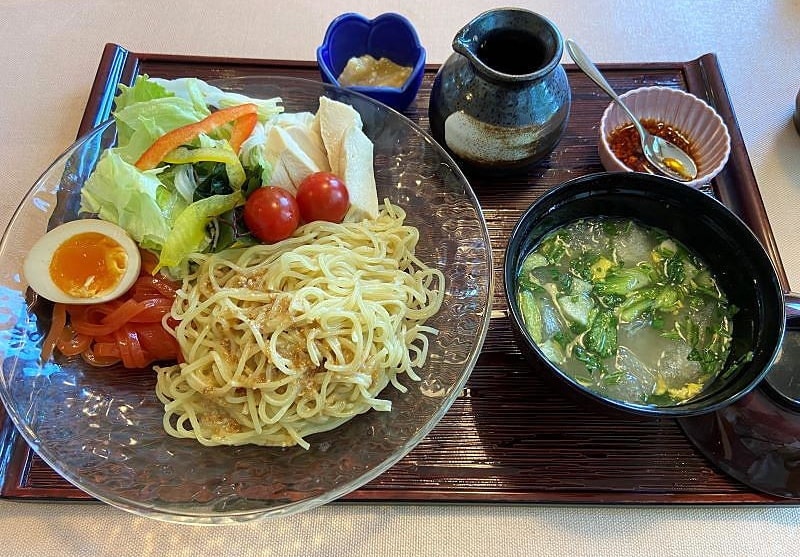 先に紹介の道の駅なかせんに隣接する合同会社ダイセン創農さんのファクトリーショップですが、テイクアウト限定ながら当地のご自慢トマトを使ったナポリタンと冷製パスタをいただけます。