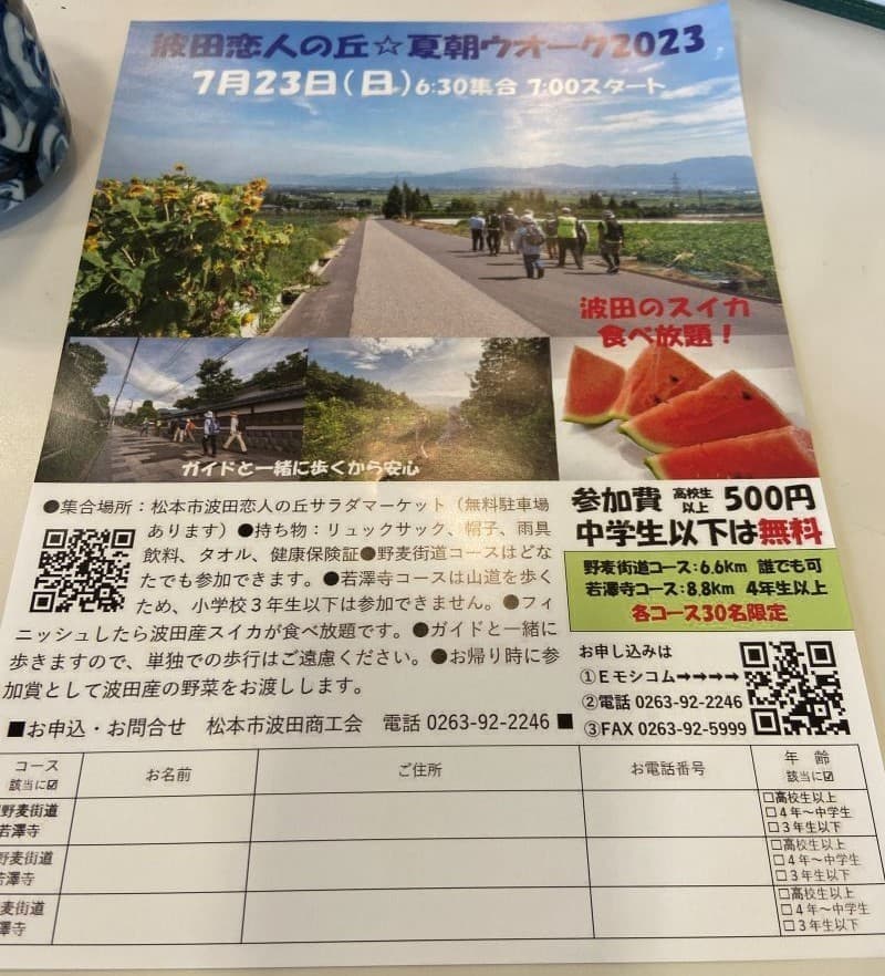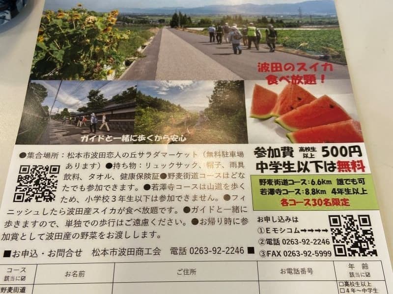 「ゴールデンタイム(ファーマーズガーデンやまがた)」でも紹介させていただきました松本市波田の「味工房はた」。いつもここで気になっていたのがウォーキングイベントのチラシでした。