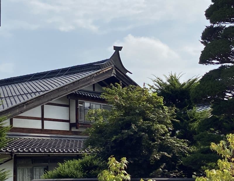 ただ私が一番興味を持ったのは、民家の屋根の特徴でした。初めて見る形状にウォーキングイベントのスタッフに早速尋ねてみますと「雀返し」や「雀おどし」と教えていただきました。