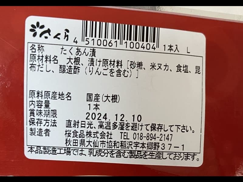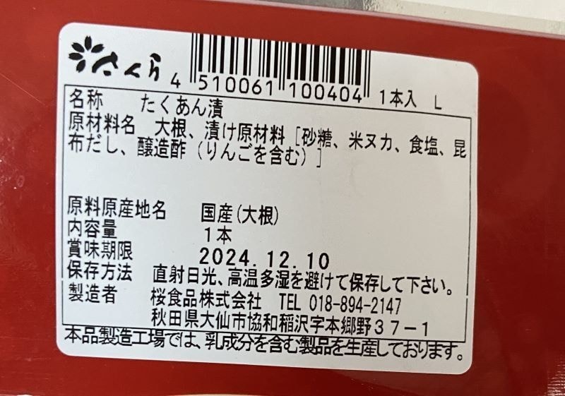 桜食品さんのいぶりがっこ