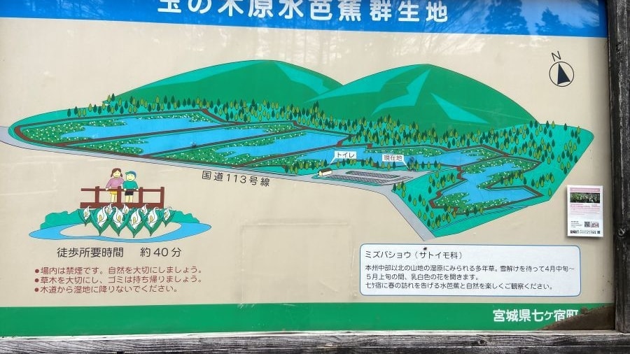 国道113号線沿いにあり、ドライブの休憩に立ち寄りましたが、水芭蕉群が運転の疲れを癒してくれました。結構広いので気分転換の散策にはもってこいでした。