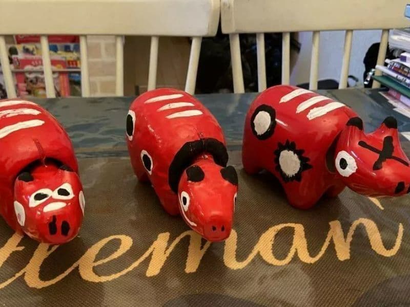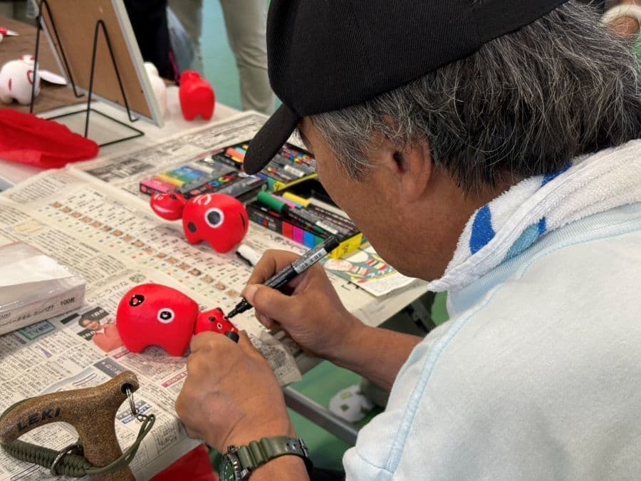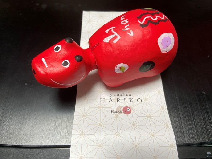 イベント会場で行われていたべこの絵付けにも挑戦!(やないづ張り子工房Hitaritoさんの出張イベントに参加)