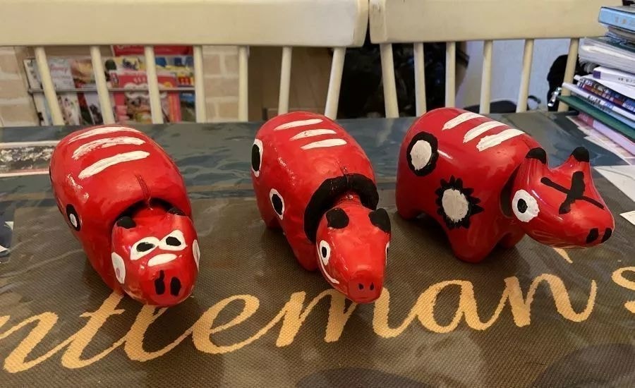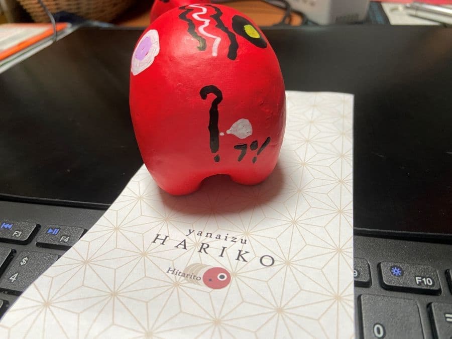 この赤べこの絵付けは弟子1号〜3号までがそれぞれに修学旅行で体験しており、弟子たちとの出来栄え比べです。